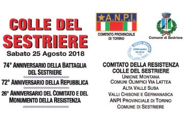 Sabato 25 agosto 2018 il Comitato della Resistenza Colle del Sestriere, le Unioni Montane Comuni Olimpici Via Lattea, Alta Val di Susa, Val Chisone...
