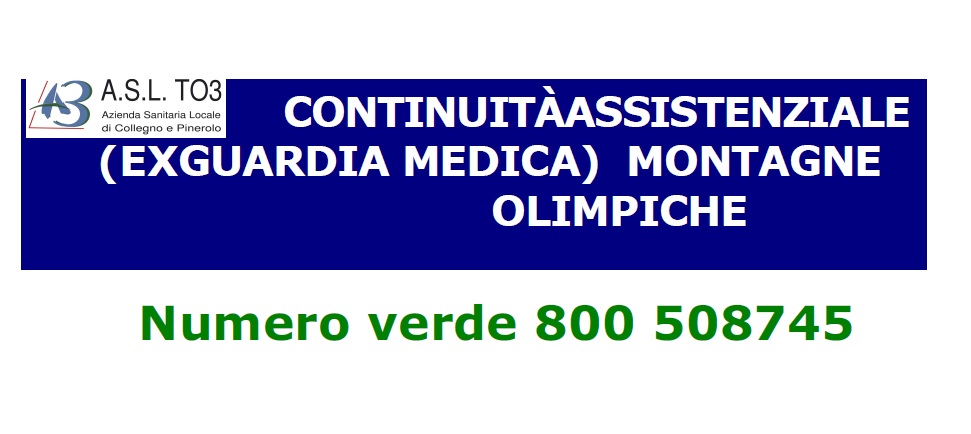Il servizio di continuità assistenziale (ex Guardia Medica) a cura di A.S.L. TO3 nei Comuni delle Valli olimpiche (alte valli Chisone e Susa) è operativo ed è stato potenziato, dal 7 dicembre 2018 al 28 aprile 2019, in considerazione dell’elevato flusso di persone ospitato sulle montagne olimpiche durante la stagione turistica invernale. Un servizio condiviso dal territorio con l’Asl To3 (Azienda Sanitaria Locale di Collegno e Pinerolo) dai comuni di Bardonecchia, Oulx, Sauze d’Oulx, Claviere, Cesana Torinese, Sauze di Cesana, Sestriere, Pragelato.