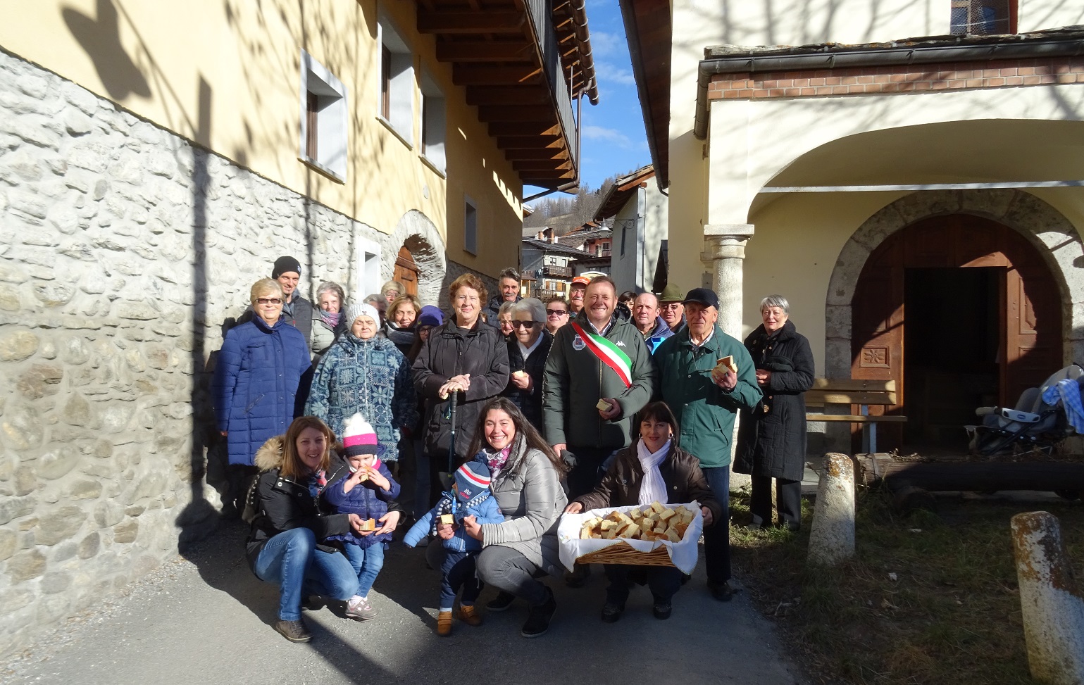 All’uscita dalla Chiesa di Mollieres è stato distribuito il pane benedetto, ed è stata scattata anche la tradizionale foto ricordo della giornata con alcuni dei residenti della frazione alpina.