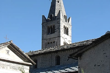 Una leggenda racconta che il feudatario di Cesana, Tolosano, inviso al popolo per la sua tirannia, fu defenestrato attraverso una trifora del campanile. Il marchese fu invitato a salire sul campanile e mentre era appoggiato alla colonnina di una trifora , gli fu data una spinta a tradimento e cadde dall'alto uccidendosi. La colonnina, che era stata in precedenza spezzata, cadde anch'essa a terra, non fu più sostituita e ancor oggi essa manca nella trifora rivolta verso Bousson.