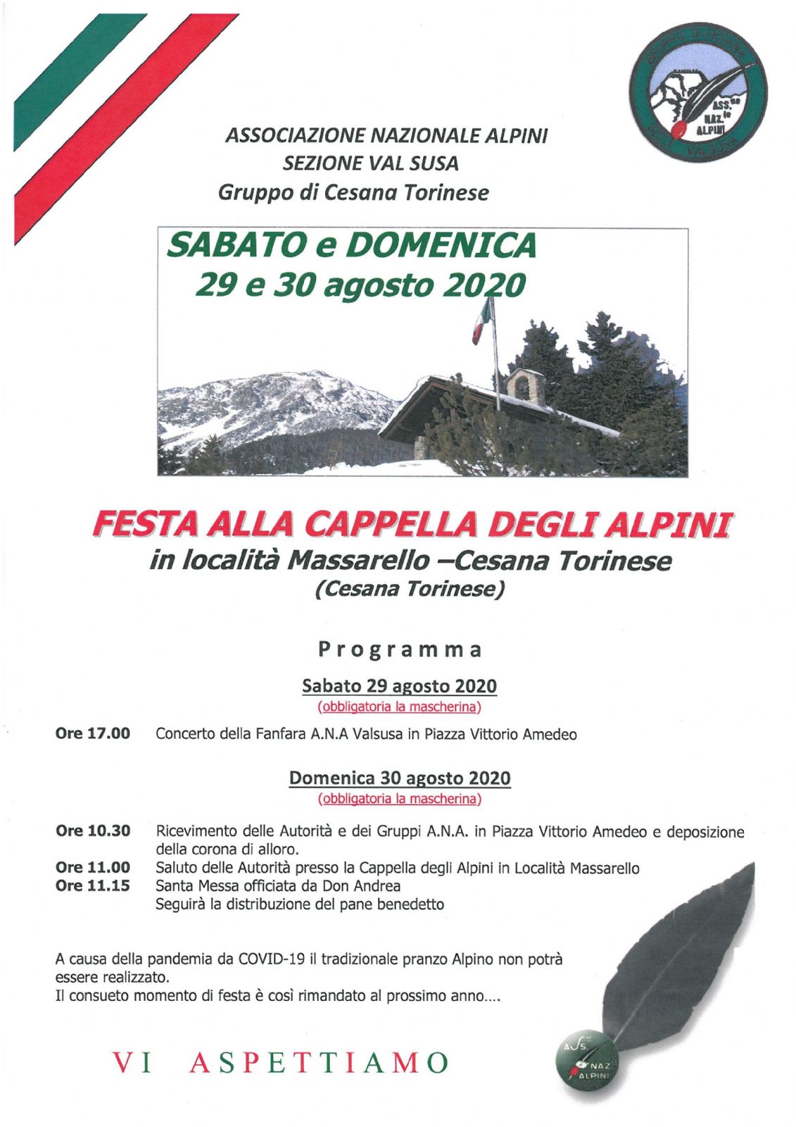 Ore 11.00 Saluto delle autorità presso Cappella degli Alpini al Massarello
