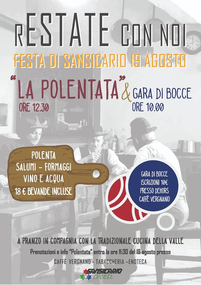 Dalle ore 13.00 polentata in piazzetta a San Sicario Alto.