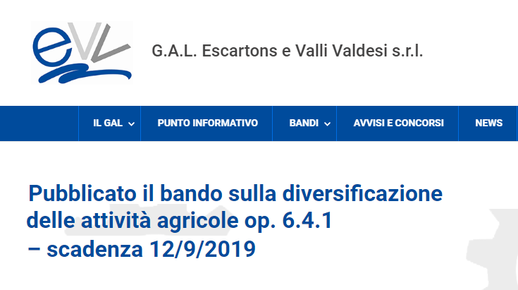 GAL Escartons e Valli Valdesi. Bando "Creazione e sviluppo di attività extra-agricole"