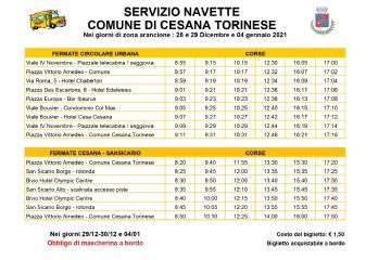 La navetta sarà attiva nei giorni di zona arancione 29 e 30 dicembre 2020 e 04...