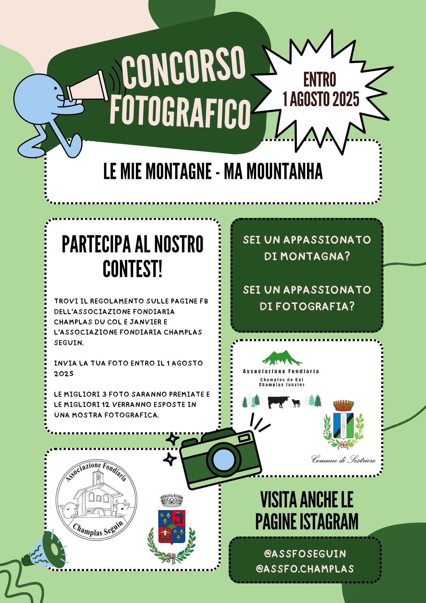 Nasce un nuovo progetto, un contest fotografico in Champlas Du Col, Janvier e Seguin, denominato “Le mie montagne - Ma Mountanha" promosso dalle Associazioni Fondiarie Champlas du Col e Janvier e Seguin e patrocinato dai Comuni di Sestriere e di Cesana Torinese. Tra gli obiettivi principali la valorizzazione dei territori dei tre Champlas attraverso la fotografia, con il coinvolgimento di cittadini e appassionati di fotografia nella riscoperta del patrimonio paesaggistico, naturale e umano del paese. Si vuole inoltre creare un momento di aggregazione e condivisione artistica nonché la promozione della cultura locale attraverso la pubblicazione delle migliori opere.