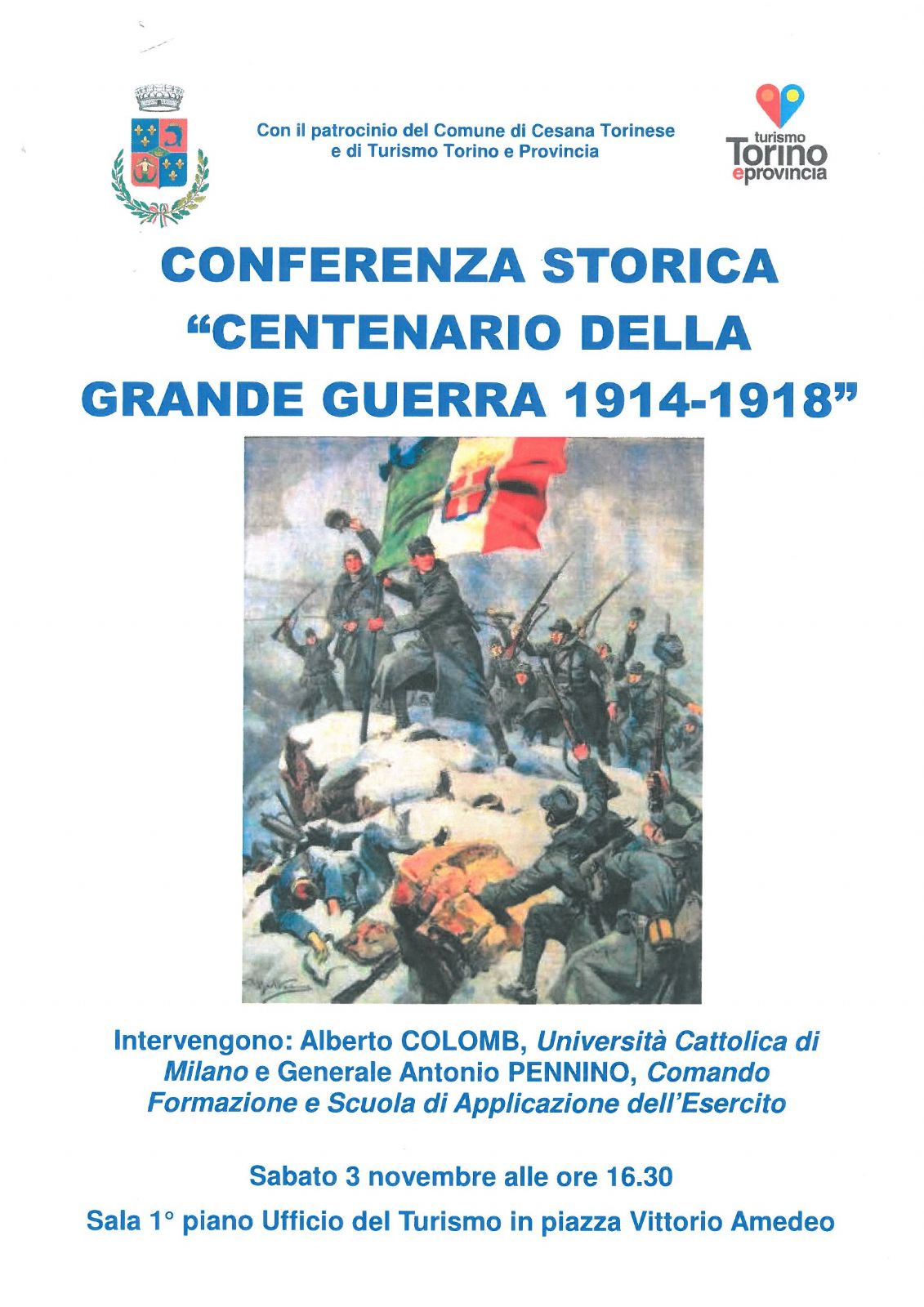 Nell'ambito delle iniziative storico-culturali in memoria delle celebrazioni del "Centenario della Prima Guerra Mondiale 1914-1918" l'Amministrazione comunale di Cesana Torinese ha organizzato una conferenza storica sulla Grande Guerra il giorno sabato 3 novembre alle ore 16.30 presso la sala conferenze dell'Ufficio del Turismo, piazza Vittorio Amedeo.